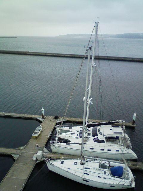 ヨットを直しに行ってきました。写真はヨットのマストのてっぺんから